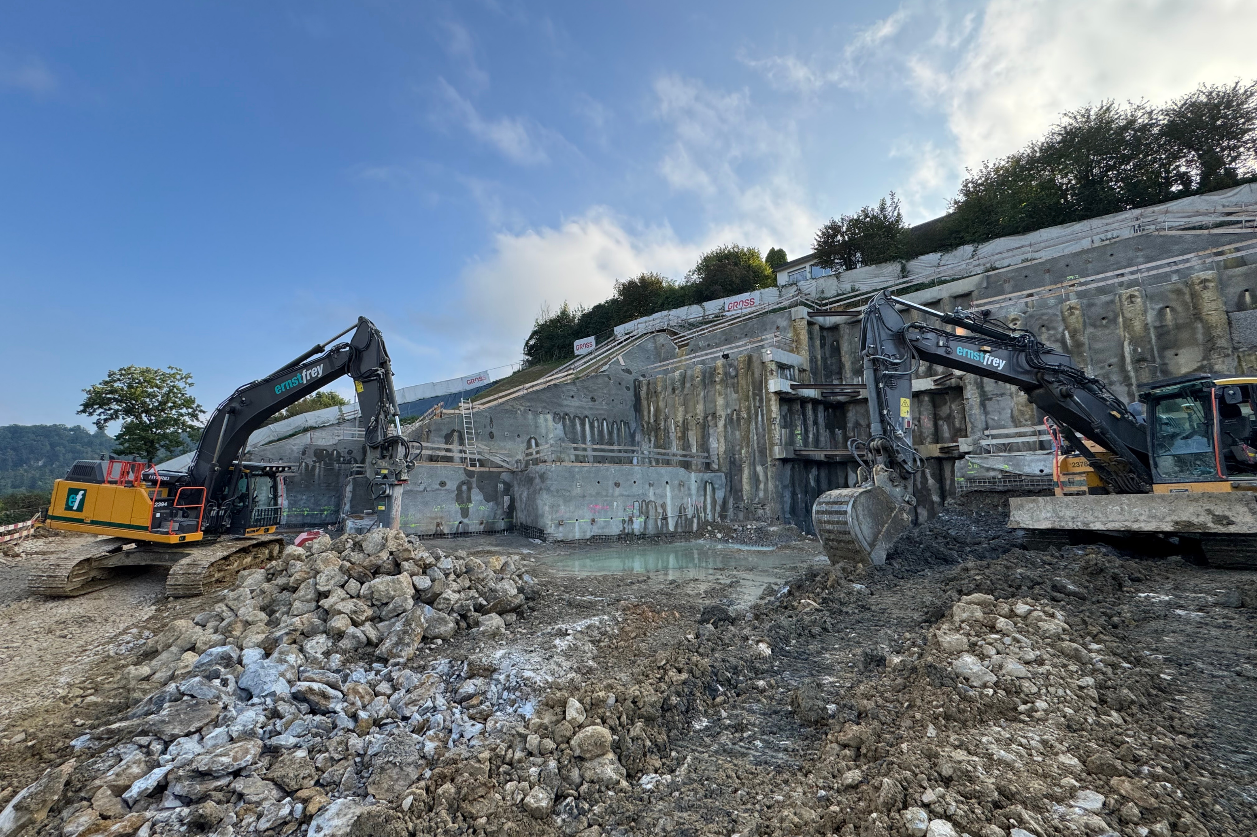 Update aus Duggingen: Komplexe Baugrubensicherung schreitet voran |