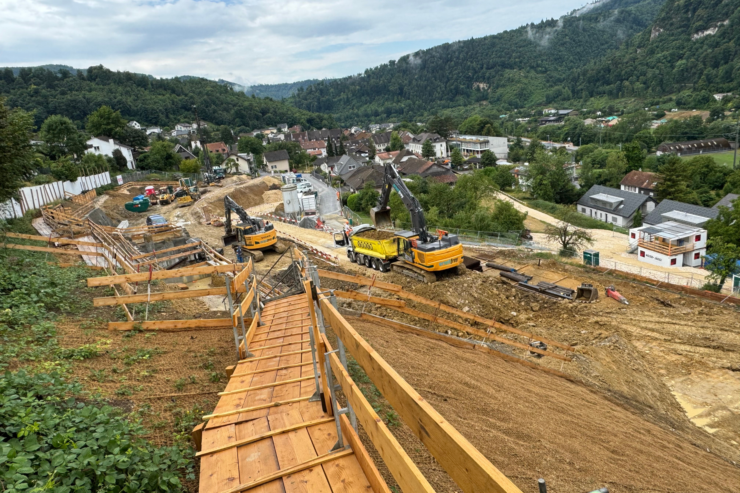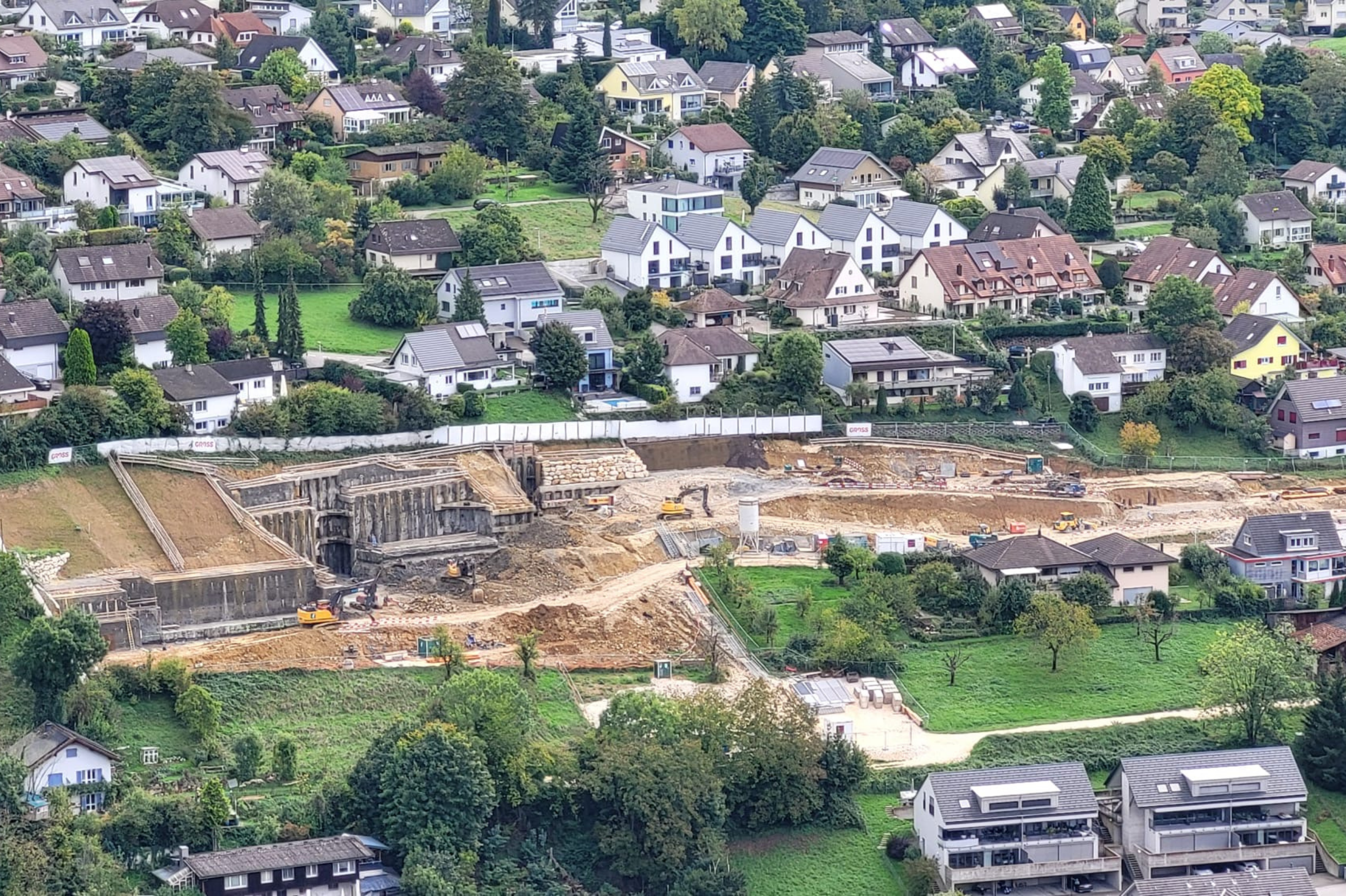 Am Anna Zipper-Weg nimmt das Terrassenhaus-Projekt weiter Form an. Die Baugrubensicherung im steilen Gelände – inklusive Felsabbau und anspruchsvoller Logistik – stellt hohe Anforderungen an Planung und Ausführung.